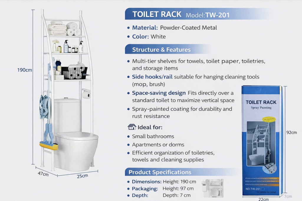 If your bathroom feels tight or cluttered, this rack is the perfect space-saving solution.